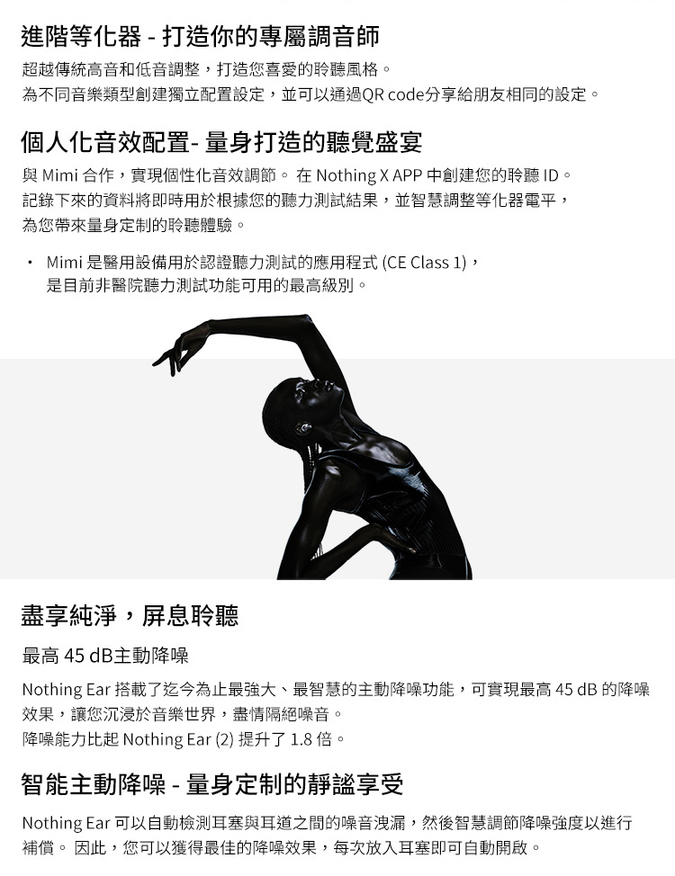 - Hi-Res無線無損音質,最高 45 dB主動降噪
